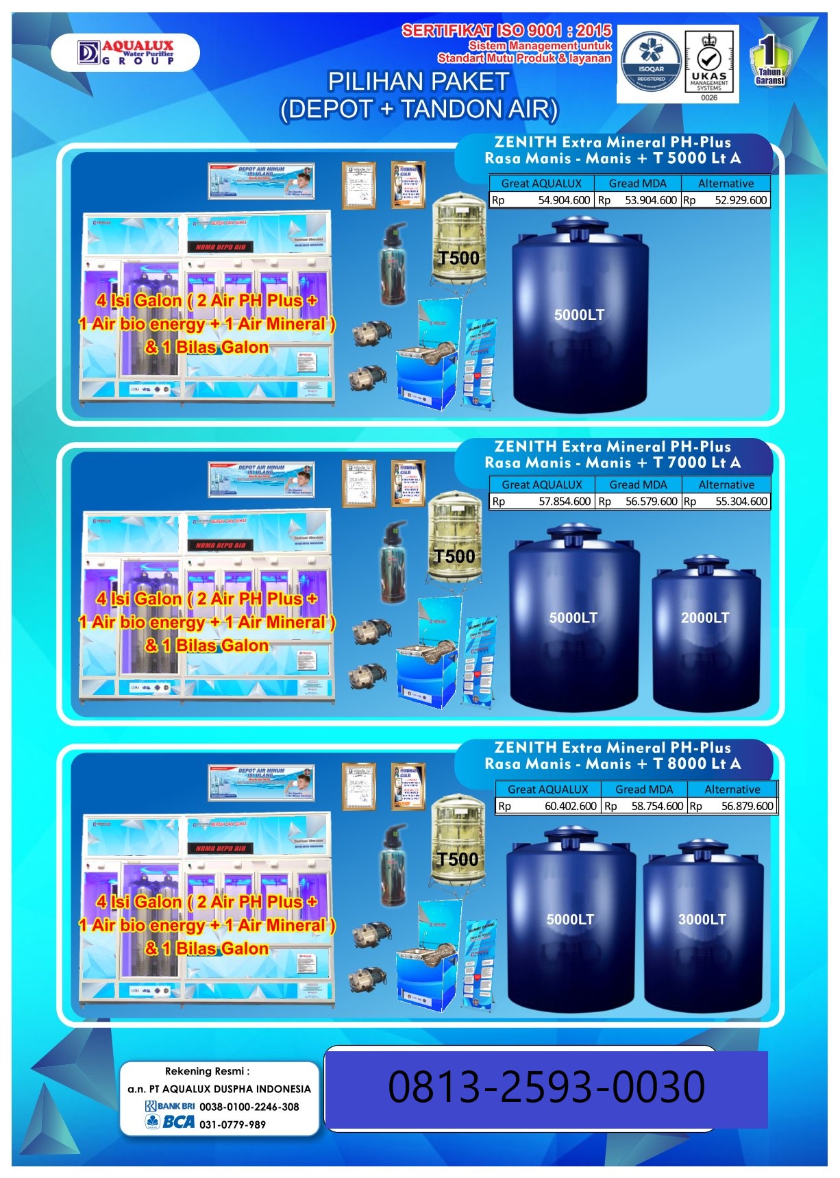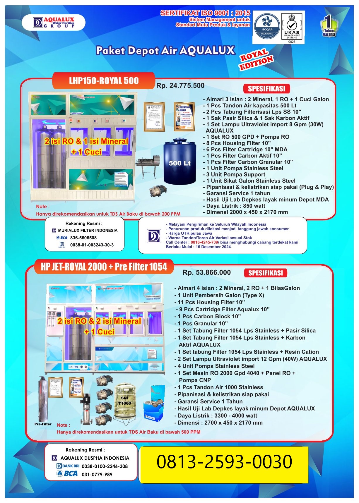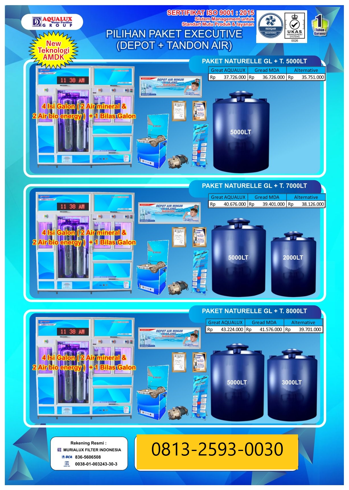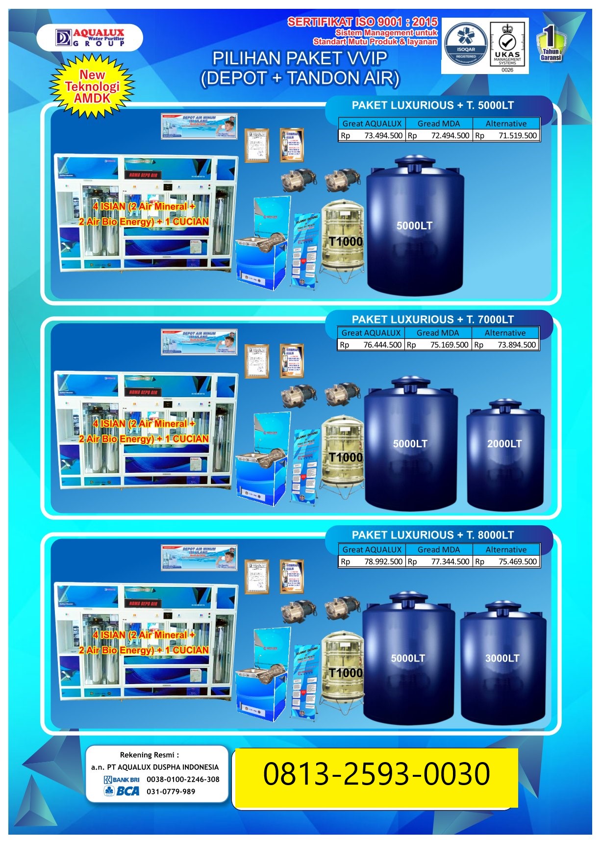 Mulai usaha depot air dengan mesin depot air minum isi ulang berkualitas tinggi. Terbukti telah digunakan ribuan pengusaha di seluruh Indonesia. Air lebih jernih, aman, dan siap dijual.